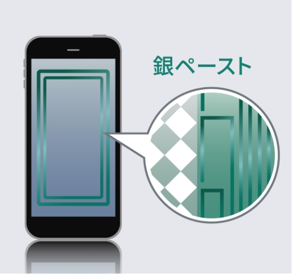 当社は、スマートフォンを中心に市場が拡大したタッチパネル向け電極材料/導電材料として「低温硬化型スクリーン印刷用導電性銀ペースト」を開発、現在も継続して採用されています。また「低温硬化」という観点から、耐熱性の弱い基材上に使用する「機能性材料」としての導電材/導電ペーストの用途展開も進めています。