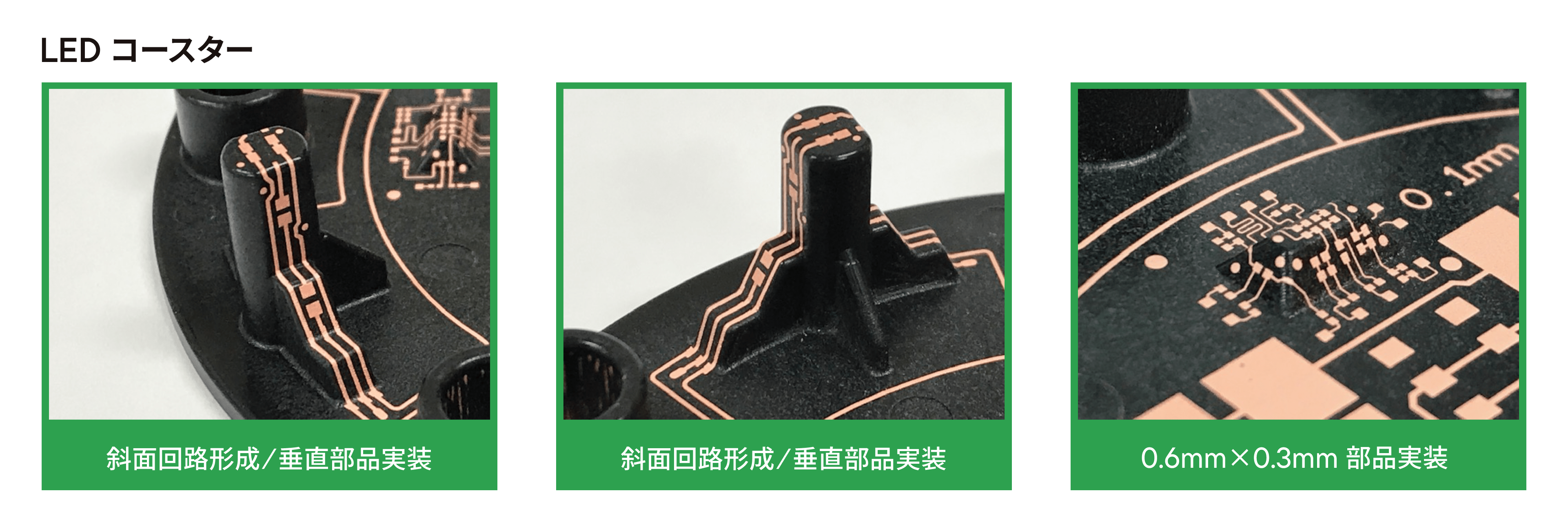 MID技術+部品実装を応用した製品小型化、一体化による実装効率向上など期待されています。