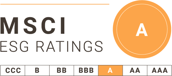 MSCI ESGレーティングは、MSCIが企業の環境(Environment)、社会(Social)、ガバナンス(Governance)におけるリスクマネジメントの程度を分析し、最上位ランクの「AAA」から最下位ランクの「CCC」まで7段階で評価するもので、ESG投資の世界的な評価指標とされています。当社は、ESGへの取り組みや情報開示が高く評価され、「A」評価を獲得しました。