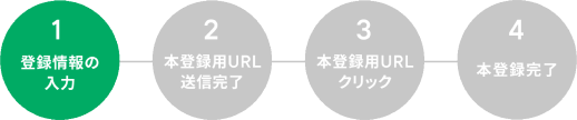 入力頂いたメールアドレスに、本登録用のURLを送信します。URLをクリックして頂くと、本登録が完了致します。