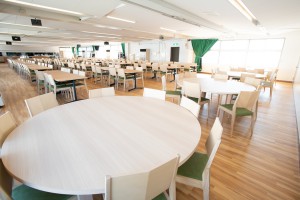 太陽ホールディングスは、2014年より各拠点で食材や素材にこだわった美味しい食事と社員食堂の常識を超えた空間作りをコンセプトに社員食堂の設置・運営に取り組んでおり、高槻嵐山食堂は6カ所目となります。他の拠点と同じく、ランチは400円で日替わり3種のメイン料理、ブッフェスタイルの副菜、ドリンク等を提供し、グループ内最大規模となる約300名が利用可能です。