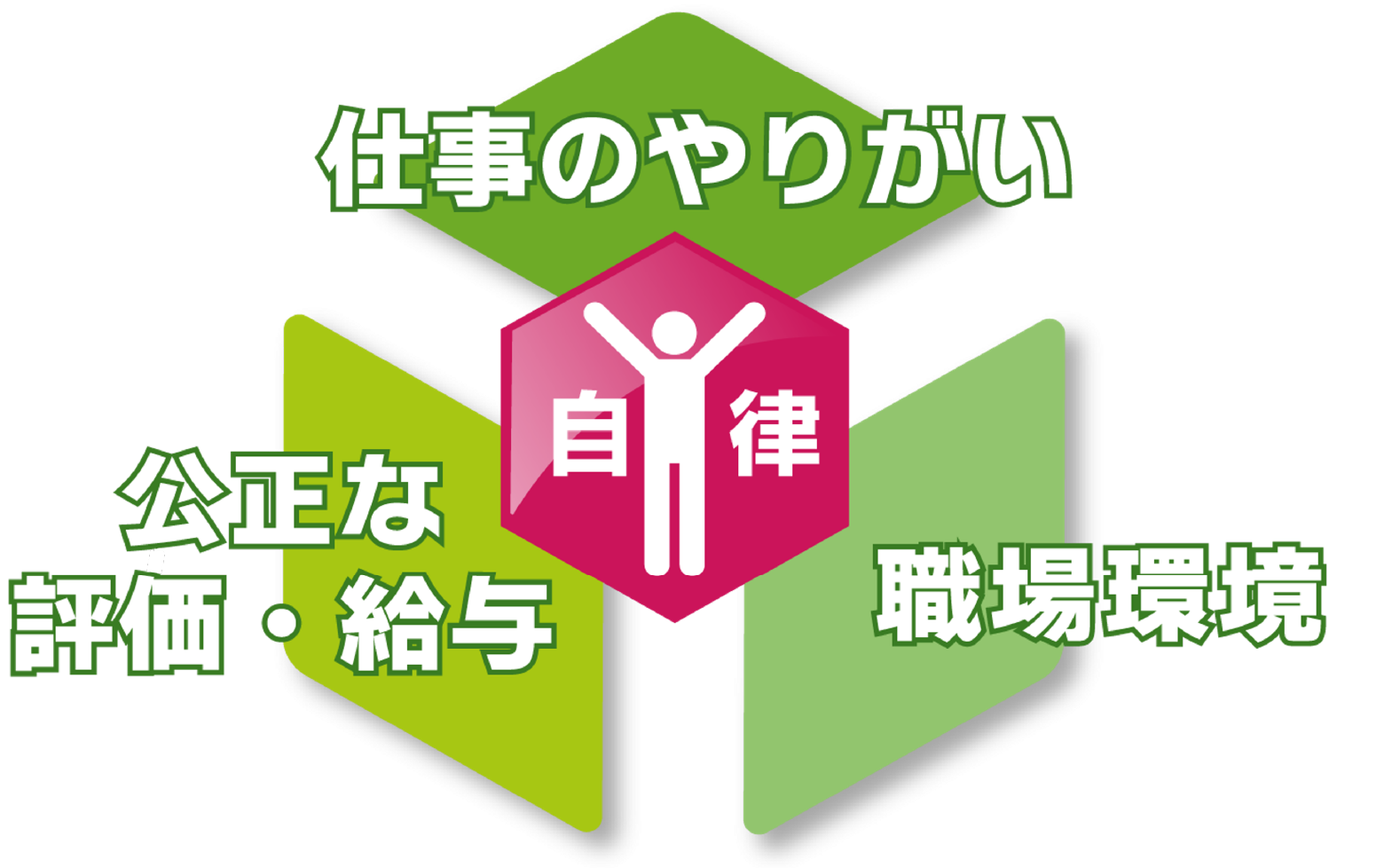 そのため、経営からの3つのコミットメントとして「仕事のやりがい」「職場環境」「公正な評価・給与」を約束し、社員一人ひとりが自分らしい「健康」について考え、「楽しむ」ことと「健康」を相乗的に実現できる環境を整備することで、一人ひとりの活躍を支援するとともに、経営理念である「楽しい社会の実現」を目指してまいります。
