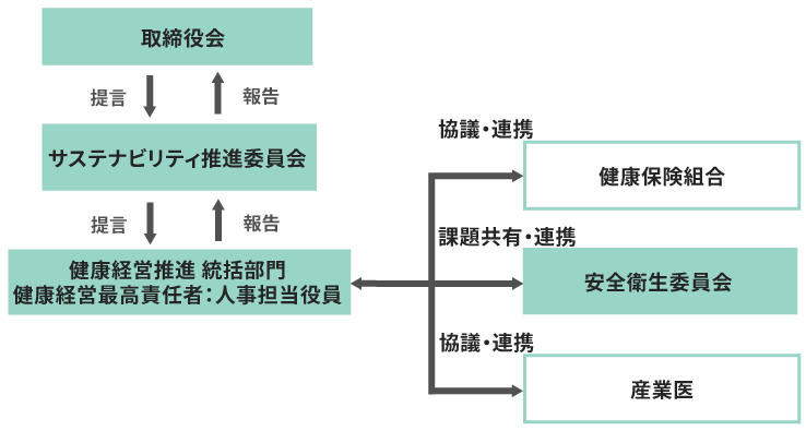 また、人的資本に係る重要事項の特定や開示方針などについては、サステナビリティ推進委員会で審議・決定し、重要事項については、取締役会の提言を受ける体制を構築しています。